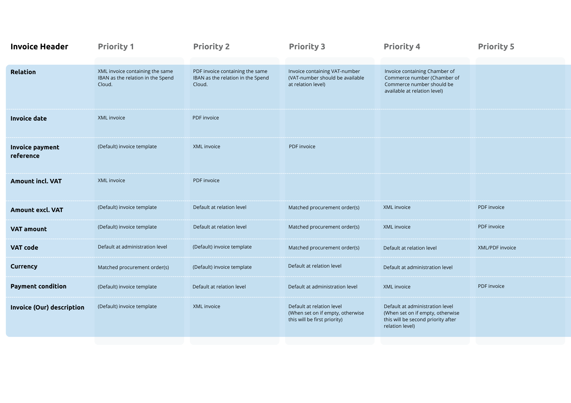 There are various ways to save time during invoice coding. The best solution for your organization depends on several factors. If you use the Procurement module, you can save a lot of time by linking orders to invoices. Requesting XML invoices from relations and discussing with them about including certain standard data can also save time. If that's not an option, standard values are a good solution since you often receive the same invoices/types of costs from relations. You can save time by letting Spend Cloud automatically fill in standard data when a relation is recognized on the invoice. You can combine multiple solutions to pre-fill invoice data as much as possible.