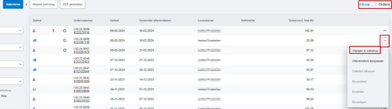 You can also cancel an order using the "Modify in webshop" option. However, this cancellation will only be processed by Albert Heijn. The order will not be fulfilled but will remain open in the Spend Cloud. You will not return to the Spend Cloud and will need to manually cancel the order there.