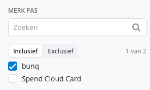 Binnen Applicatiebeheer / Kas & Pas / Pasbeheer vind je jullie bunq-passen terug. Maak hiervoor aan de rechterkant van het scherm de volgende selectie: