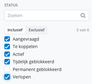 Status: Aangevraagd, Te koppelen, Actief, Tijdelijk geblokkeerd & Verlopen