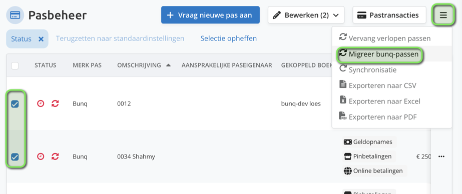 Stap 3: Selecteer en druk op de knop 'Migreer bunq-passen'