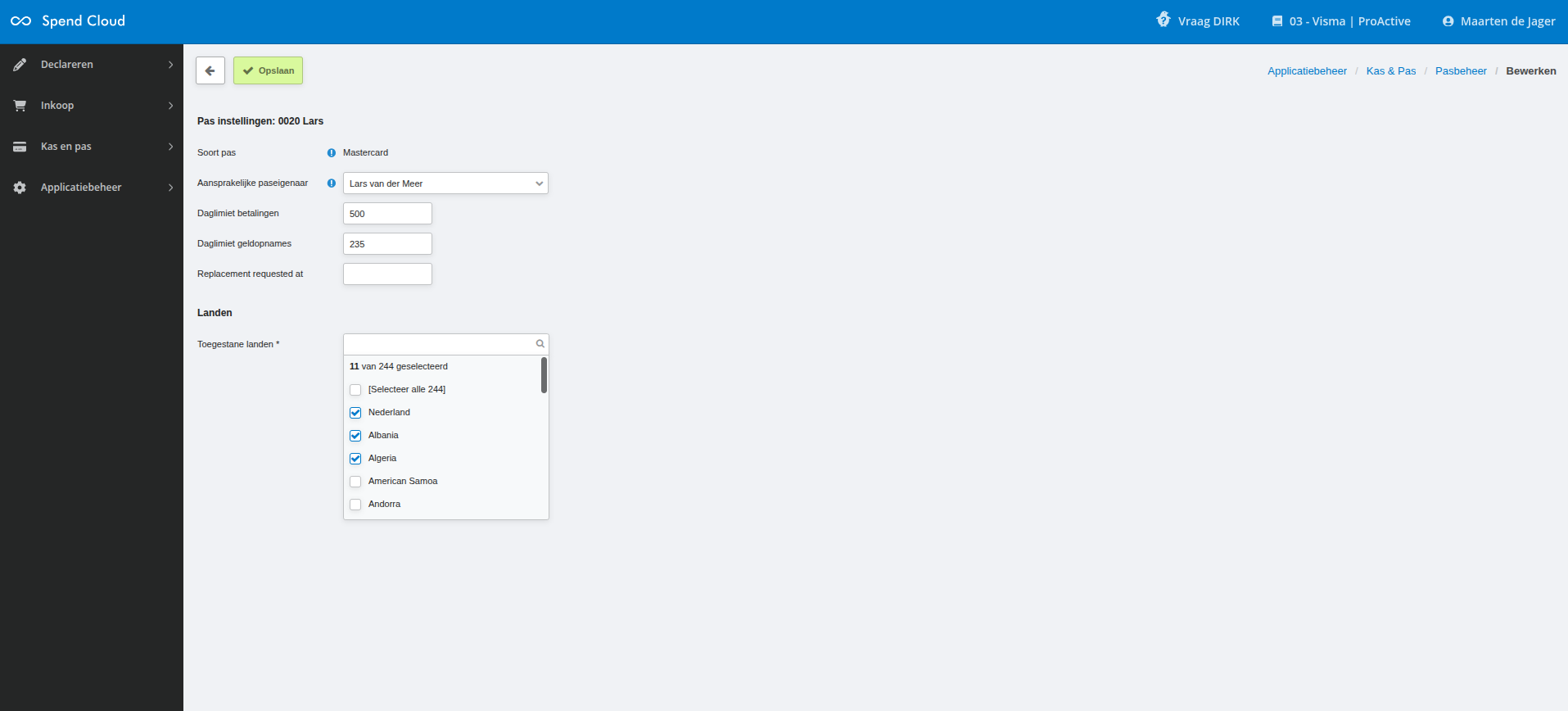 De aansprakelijke pas eigenaar instellen bij Spend Cloud Cards