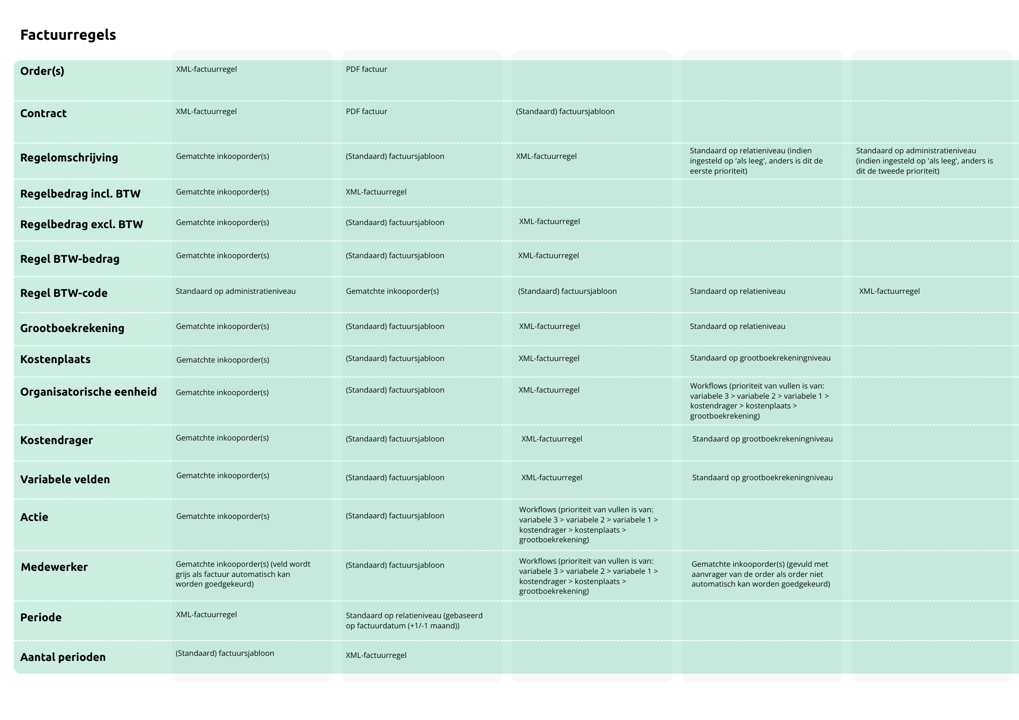 Tip: Bespreek dan ook met leveranciers of zij XML facturen kunnen aanleveren en wat de mogelijkheden zijn om standaard een aantal gegevens in de factuur op te nemen, zoals een grootboekrekening of kostenplaatsnummer.